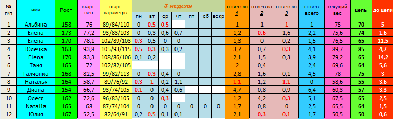 Привет! № 3. Сегодня и завтра отвесы не знаю — весов нет. Отчитаюсь в понедельник, поэтому, Наташа, ставь нули.
