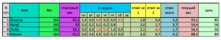 Наши отчеты и результаты:)Добрый вечер, девушки! Наши ряды совсем поредели(((( Давайте те кто остался, держаться вместе!!!! Юлечка, какие бы не были привесы, общий отвес то все равно 3,2, а это всего за 2 недели! Natali красотка, с изначально не большим весом сохраняет отвес 3,7. Люба, как по мне совсем худышка, все равно худеет, но для такого изначального веса- это все равно позитивная динамика! Девочки, держите хвост пистолетом!!!!!