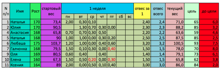 Девочки, я вчера накосячила((( Сегодня взвешиваться не стала, завтра начну опять с 1 недели, не удаляйте с таблицы, хочу быть вами