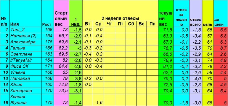 Привет! Номер 14, у меня по нулям два дня. Вес 72,5. Видимо дают о себе знать крит.дни.