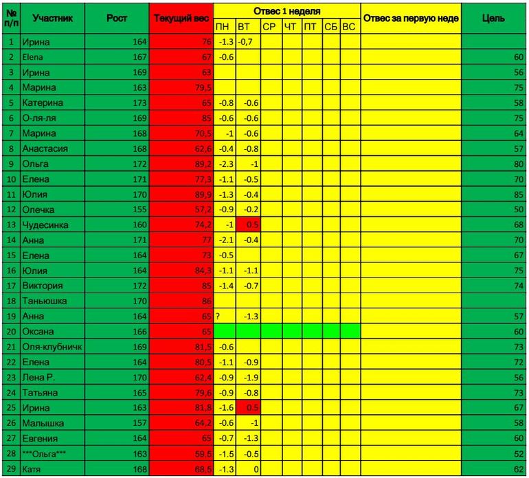 Мне, например, тяжело дается отсутствие молочки в рационе) Ну и, конечно, жду ваших отвесов за вторник! Табличка по ссылке