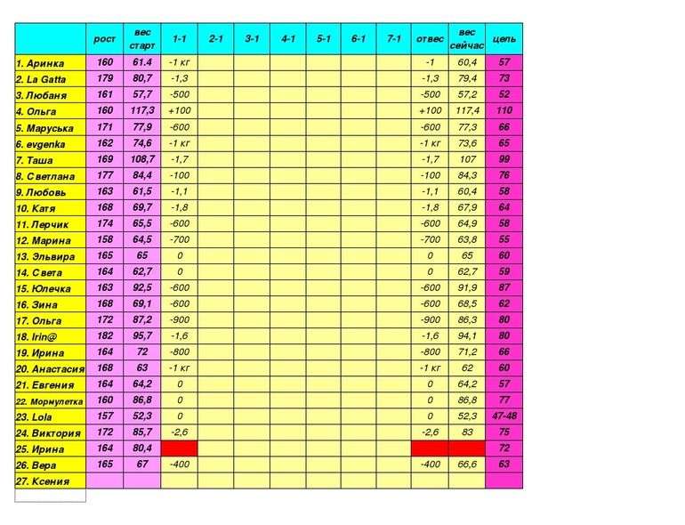Сегодня у вас за вчерашний день сколько отвес? напишите еще рост, вес на старте и цель (вес к которому стремитесь)