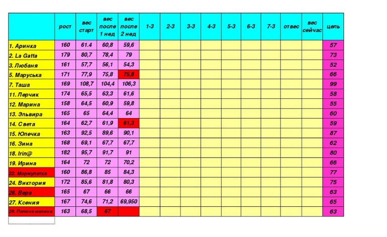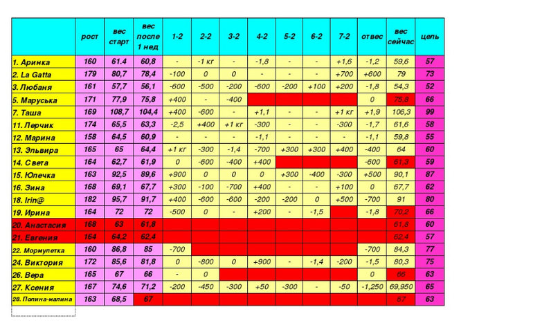 Наши отчеты и результаты:)Девочки, подводим итоги второй недели!!!!!!