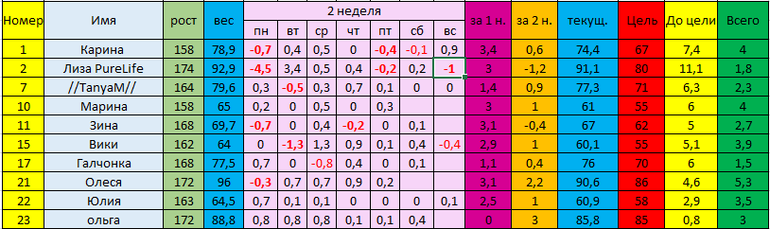 Наши отчеты и результаты:)Привет.Пишите ваш номер, отвес и текущий вес.