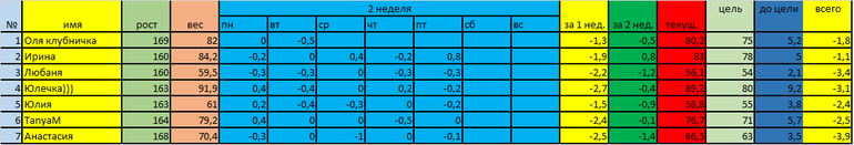 Здравствуйте девочки, что то десять раз становилась на весы и десять раз они мне разный вес показывали... ну, в общем взяла среднее 55,9 итог -200 грамм)))) сегодня завтрак по диете, может и обед, а ужин нет... самое главное третья неделя, у меня на ней тоже хорошо уходит вес, особенно после фруктовых дней))