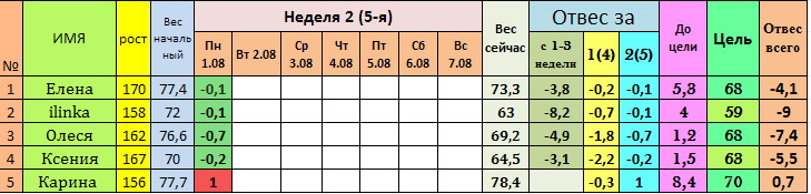 Наши отчеты и результаты:)Привет всем!!! Опять середина недели!!! Держимся, девочки!!! Помним, для чего мы тут собрались, идем к своим целям, лето в разгаре, пляж нас ждет, скоро и мы будем не стесняясь, смело щеголять в купальнике ))))