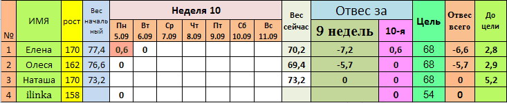 Наши отчеты и результаты:)Доброе утро, девочки! Снова середина недели, не расслабляемся!!!
