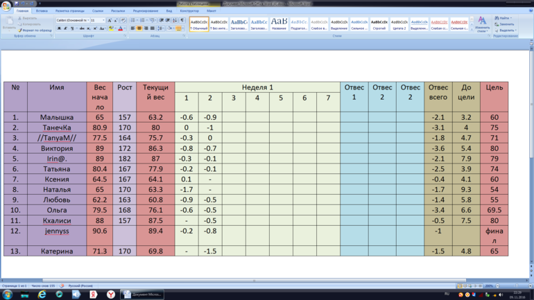 № 5 вес на сегодня 86,9 кг (в табличке не верный текущий вес написан), отвес сегодня 0 (((( ... наверное из-за КД ... эх.