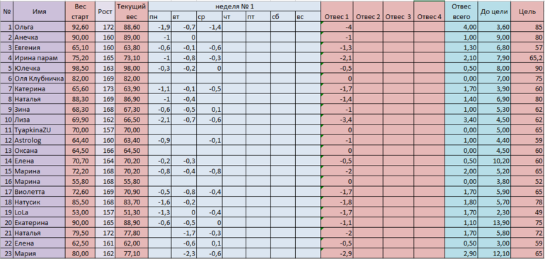 Для меня это далеко не первый круг с магги) А так же не первый раз я веду табличку, поэтому просьба ко всем пишите номер свой в табличке, вес, отвес на каждый день.