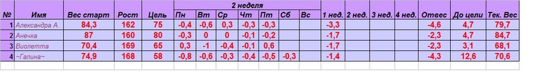Наши отчеты и результаты:)Доброе утречко! Берём себя в руки, последний рывок на этой неделе! Меню сегодня сытненькое, это радует)) Сегодня без лишних слов, сразу табличка: