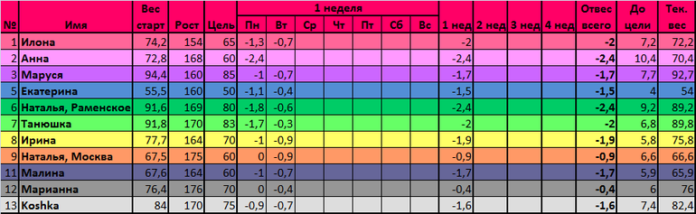 Старт 13 марта 1 неделя 4 день (смотрим результаты ВТ, пишем результаты СР)
