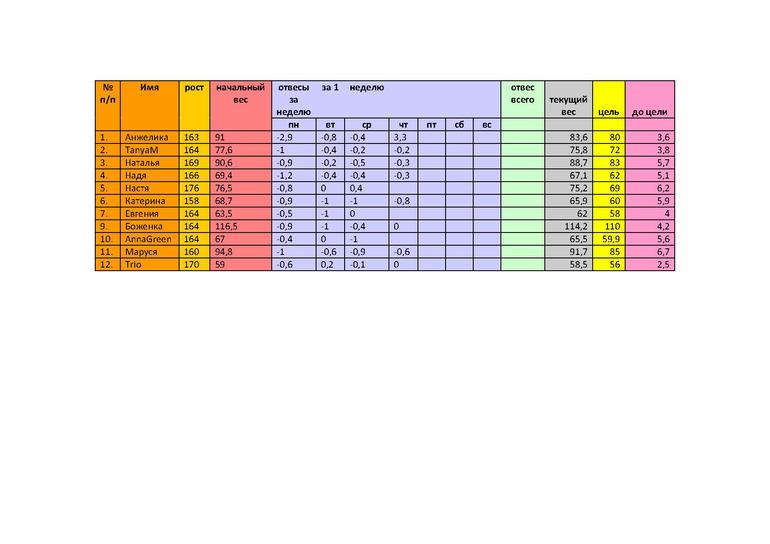 Привет! У меня за пятницу отвес 400, на весах 66,7))) Завтра скорее всего будет привес.... Племяшка выпускница сегодня, че-то в связи с этим, выбилась я из режима питания на денек(