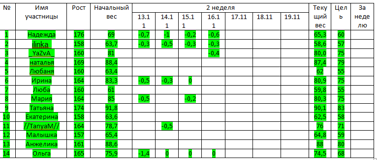 Наши отчеты и результаты:)У меня сегодня -0,6.уже два дня была без ужина,наверно потому что был поздний обед и ужинать просто не хотелось)))Как ваши дела?