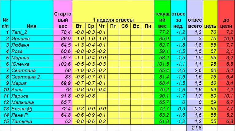 Сегодня у нас пятый день и мы уже коллективно скинули 21,8 кг 👏
