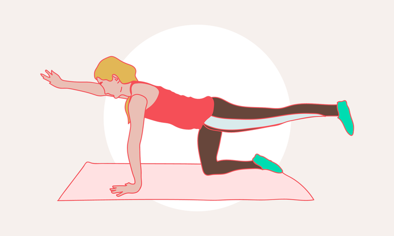 Как выполнять: Встаньте на четвереньки. Для начала округлите спину, втягивая живот в себя, плечами тянитесь вверх, переводя вес только на ноги и руки. Затем расслабьтесь и вернитесь в исходное положение. Теперь, когда спина ровная, вытягивайте назад прямую правую ногу, а вперед прямую левую руку. Конечности должны быть прямыми, а упорные рука и нога удерживать вес. Спина должна оставаться прямой.