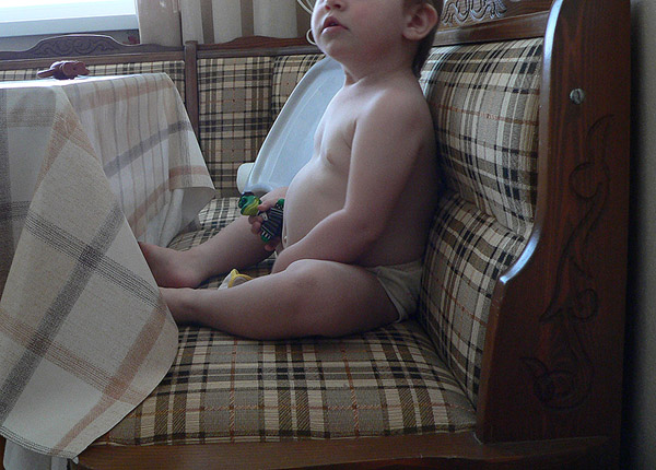 Да ладно, нормальный животик! У моего и больше бывает, когда компота целый стакан разом выпьет)))