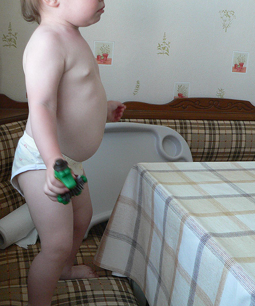 Физическое развитиеПриезжала к нам в гости моя тётя, у которой три внука. И говорит, что у Инны ненормально большой живот... Я и сама замечала, но думала, что у маленьких деток это бывает?.. И педиатры нам никогда ничего не говорили по этому поводу. УЗИ делали 2 раза, со внутренними органами всё в порядке. К хирургу в 1,5 года ещё вот не попали только. Может он бы что сказал...