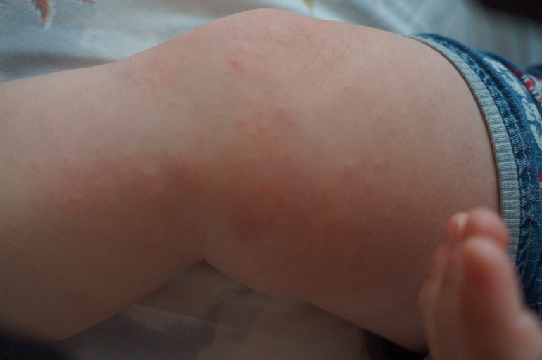 Высыпания на кожеДевочки, может кто сталкивался с таким, я уже не знаю, на что может так сыпать?(( В общем, пару месяцев назад гостили у моих родителей, там добрый дедушка от души пичкал внука конфетами (сыну 2 года). По приезду домой у ребенка началась сыпь - не сильно много, и только на ножках и ручках, похожа была на волдырики, ребенка она никак не беспокоила, не чесалась, в болячки не превращалась. Я сразу подумала, что это реакция на конфеты, которых раньше ребенок в таких количествах не ел никогда. стала мазать высыпания фукарцином, подсушили мы их. Но потом сыпь пошла снова, причем локализована была по большей части на коленях, прям много и мелкая, на локтях тоже немного появилась. Пошли мы к педиатру, которая едва взглянув на ребенка, сразу поставила диагноз аллергический дерматит, я спросила, на что может сыпать ребенка, она ответила, что, мол, Вам виднее, чем Вы его там кормите. А надо сказать, что ребенок не аллергик, никаких чипсов-сухариков-газировок в жизни никогда не пробовал. Прописали нам гипоаллергенную диету и мазать сыпь Адвантаном, назначили общий анализ крови и мочи. Анализы сдали, все в норме. Путем перебирания всех продуктов, которые ест ребенок, пришли к выводу, что сыпать может на молоко, на котором варю ему каши, стала варить каши на воде, Адванатаном мазались, сыпь прошла. И вот позавчера-вчера обсыпало снова, опять эти мелкие прыщички, теперь уже еще и на спине и животе((( И еще кожа стала заметно суше, сыпь тоже носит характер как бы подсохших прыщиков И теперь у меня остался один вариант - высыпает на хлорированную воду, может быть такое? У нас от воды прям несет хлоркой, так много ее добавляют. Выглядит это вот так