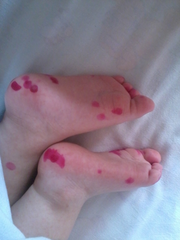 Вроде относится, на небе были красные пятна и на губах были прыщики внутри.