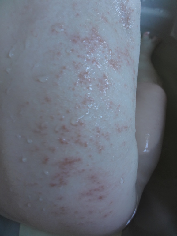 Обсыпало ровно пол-спины и еще немного на щеках. Сначала подумала, что потница (т.к. обсыпало во время жаркой погоды, когда ребенок потел), но сейчас что-то сомневаюсь. Каких-либо других симптомов (темпы, капризности, сонливости и т.д.) не наблюдалось. Посмотрите, может будут какие идеи (вести в КВД к дерматологу очень не хочется). Заранее спасибо!