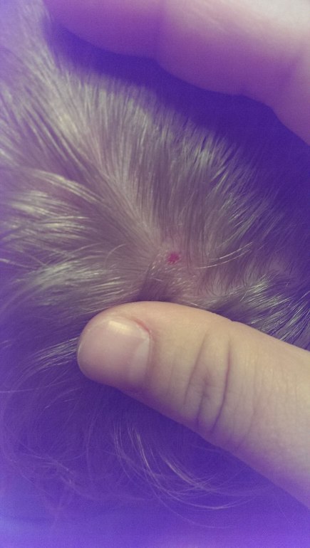 У моего было похожее на темечке, но он ударился я видела и потом корочка образовалась. Похоже будет то сковырнутая корка.