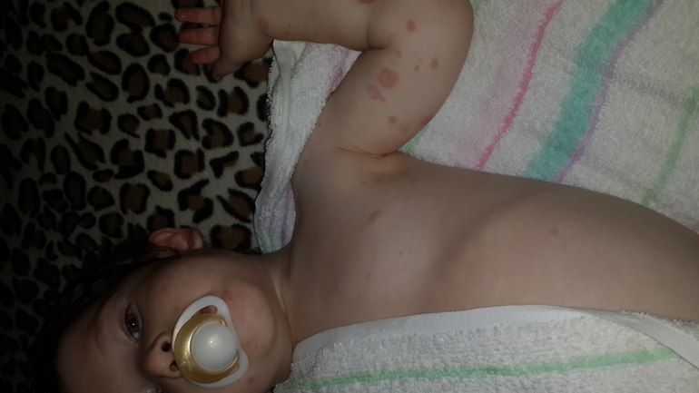 Только 2 дня назад похожие пятна были. Но больше гораздо. И быстро появлялись. Пока аллерген не выявили. Тоже думаю на собаку... хотя все говорят что на собаку обычно сыпь не бывает. .. но к врачу ещё не ходили.