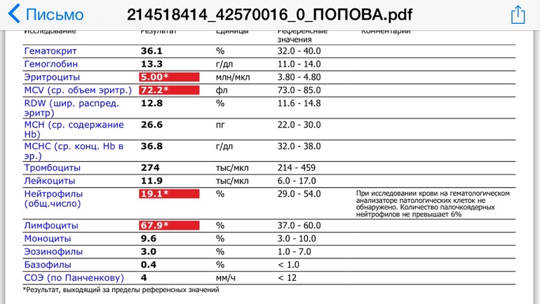 ОАК прикрепила. Показатели такие уже на протяжении года. Инфекционист не нашел ничего. Сдавали здоровыми, перед этим ничем не болели.