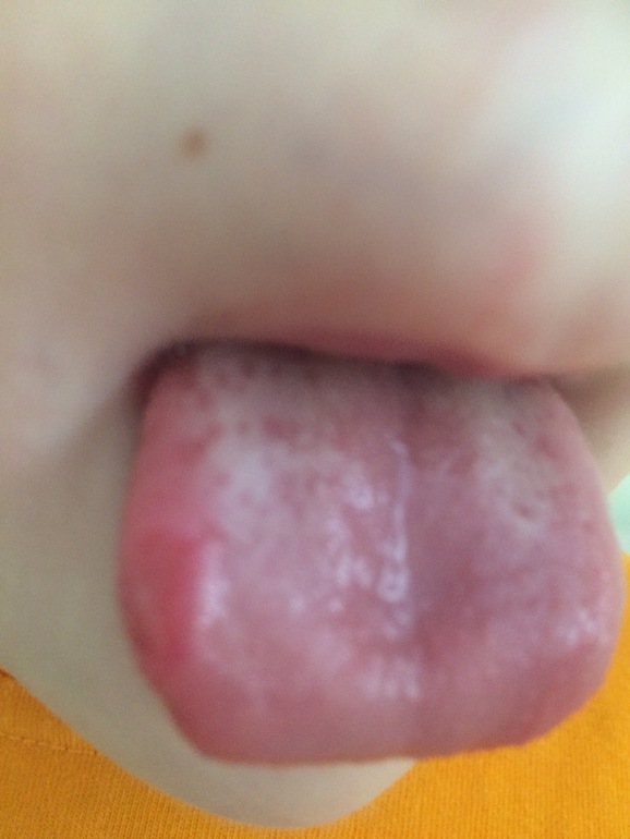 В пятницу не пошли в сад, показалось простыл, вечером 37,9, много пили и снизилась сама. На всякий случай полезла глянуть горло и увидела на языке белую бляшку, помазала холисалом, на ощупь плотная немного. Накануне вечером в четверг не уследила и затолкал в рот горячий омлет, сразу выплюнул, может обжегся? Или в садике бесились и прикусил, т.к. близко к зубам как раз. Сейчас белый налет как бы слез и теперь такая красная ранка. Особо не беспокоит, но сейчас попросил мандарин, засунул в рот дольку и сразу запищал, что больно((( Что-то переживаю, 2 раза болели стоматитом и кандидозным (в младенчестве),и вирусным (с температурой под 40) и картина во рту была иная.