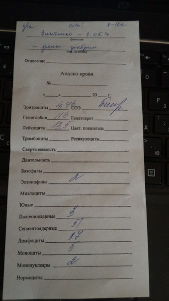 Долго писала ответ и ничего не сохранилось. Повторю кратко. Во-первых, я не специалист, просто чуть разбираюсь. У вас сильно завышены лейкоциты - однозначно есть очаг воспаления. Эозинофилы завышены в 4 раза, это тоже важный показатель, возможно аллергия, аскариды или ещё что-то. Мононуклеары вообще не должны быть в крови. Когда они есть это мононуклеоз уже. Мы только им, кстати, переболели, есть посты в дневнике. Бывают редкие случаи, когда 1-2 мононуклеара могут показаться в крови при каких-то заболеваниях. А вообще этот показатель жестко надо контролировать. Как правило, он вырастает за 1-2 дня. И тогда однозначно мононуклеоз. Здоровья!!!!