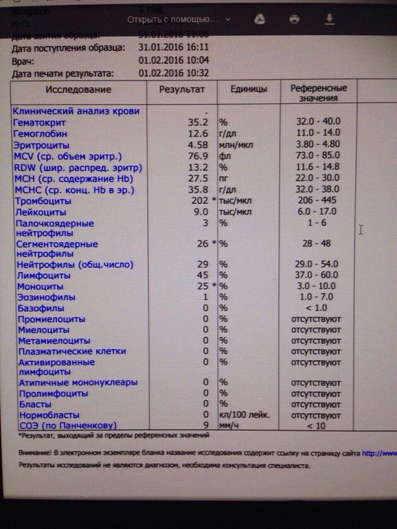 Анализ сдавали на третий день (вчера), когда температура утром была 37,2. В тот же день примерно с 12:00 температура поднимается максим до 36,8 и то если плотно поест, набегается или перегреется. Горло лечила мирамистином и люголью.