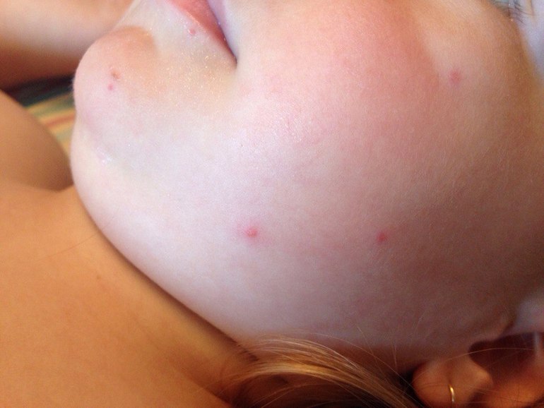 В прошлом году пришла к педиатру с прыщиками на лице, говорю аллергия, она нет это комары. Я говорю да какие комарв все лицо в пятнышках. Вобщем и правда потом выяснили, что комар за одну ночь искусал ребенку все лицо (((