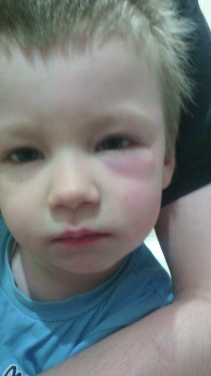 У нас точно также, нас в висок укусил. Место просто такое, что все заплывает. Мажу фенистилом и даю зиртек.