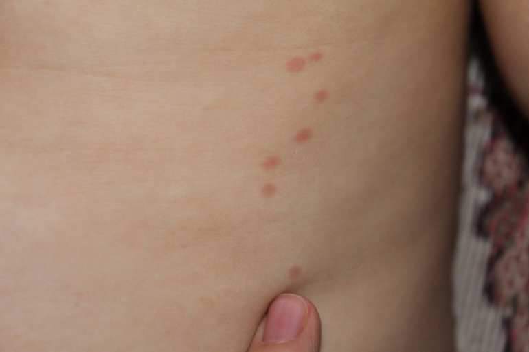 Высыпания на кожеОбнаружила сегодня когда сняла майку. пятна гладкие, на укус не похоже, с ребенком вроде все хорошо,темп.нету. фото подкат