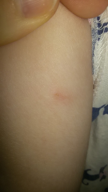 На вид ничего особенного,дети они на месте не сидят возможно гдето и правда оцарапалась))Понаблюдайте несколько дней если будет повторение обратитесь к дерматологу.