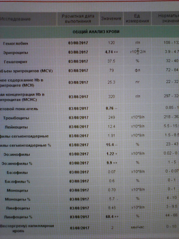 АллергияВчера сдали клин.крови, результат "не очень". 3 недели назад переболели розеолой, поэтому решила кровь посмотреть после болезни и результат меня шокирует.... (ниже). У ребенка есть высыпания на коже( думала потничка, так как сыпь бледная и мелкая по животу, спинке) А сегодня утром появились пятна огромные. похожие на укусы, но они ли?! Пятна есть даже на ступне, на 2 фото-щиколотка. Ели 4 дня борщ, 1,5 недели назад давала клубнику, черешню, на днях пару малинок.... Блин, если это аллергия, то на что? на свеклу??? клубнику? Интернет говорит, что снижение нейтрофилов, повышение лимфоцитов и эозинофилов - это вирус или бактерия точняк... Или это остаточное после розеолы и сильнейшая аллергия??!!. У дитя 3 недели уже уеличены лимфоузлы (заушные,затылочные,шейные), просто прощупываются шарики... Бежать ко врачу? Фото и анализ ниже.