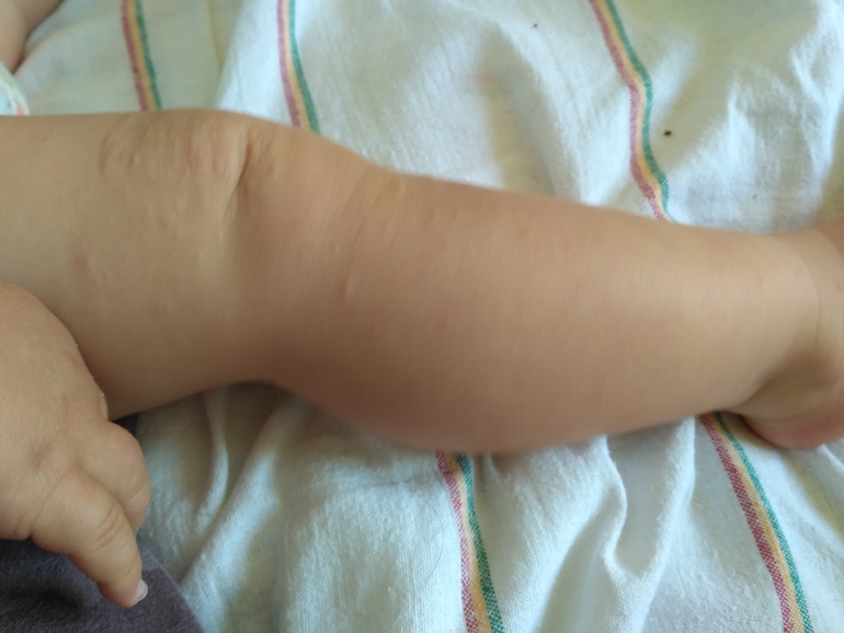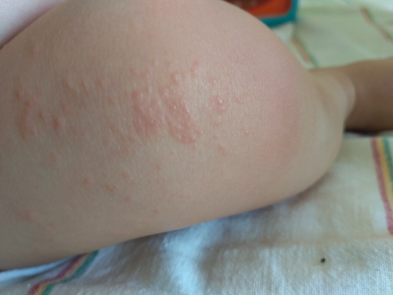 Высыпания на кожеДевочки, живём в своём доме, тут конечно всего навалом и насекомых разных на улице, и на участке трава разная есть. Ребенку почти 1,2. Появилось вчера, думала может это крапива. Сам по улице не ходит, я его на руках носила, может задели где. Но сегодня все на месте. До этого ездили в город на общ.транспорте, это похоже на что-то заразное? Оно не распространяется. Только на коленке.