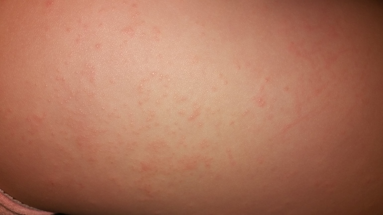 Высыпания на кожеВсе началось с того, что дочку угостили м&мсом. На следующий день на ножке появились 5 больших прыща с черной головкой. Спустя пару дней прошли и мы заболели. Под конец болезни ножку обсыпало мелкими пупырчатыми прыщами, их очень много. Диазолин , алерзин, супрастин не помогли. Были у 2-х дерматологов и педиатра, склоняются к аллергии, но я сомневаюсь, так как ничего нового не ест, пьёт антигистаминные, мажу физиогелем а.и. и ничего не проходит...возможно кто-нибудь из вас сталкивался с подобным и можете мне что-нибудь порекомендовать..