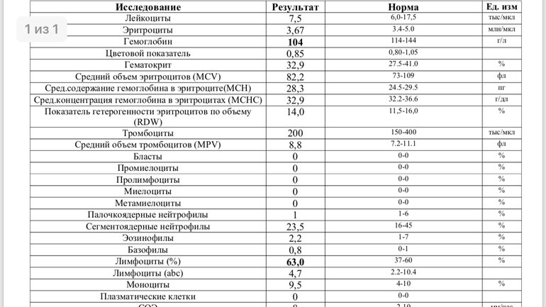 Справку для бассейна выдавал дежурный врач- спросила как анализы, ответили, что гемоглобин низкий (снова протгречку) и все. Хорошо, что я догадалась до приема анализ сфотографировать чтоб дома посмотреть. Меня удивили повышенные лимфоциты, списала на сопели и для корректности повела ребёнка в другую клинику. Сопли прошли большее надели назад, сейчас ни намёка ни на что и вот анализ
