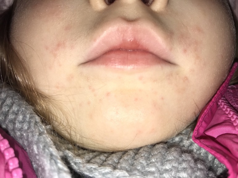 Дочке 2 года, и где-то пару месяцев назад стала замечать что периодически на лице у нее выпадает сыпь- мелкие прыщи вокруг рта и пятна под глазами ( не знаю одно ли это и тоже т.к бывает что только подбородок в сыпи). И, опять же,не знаю есть ли взаимосвязь но теперь и стул у нее бывает раз в 2дня,иногда с трудом.