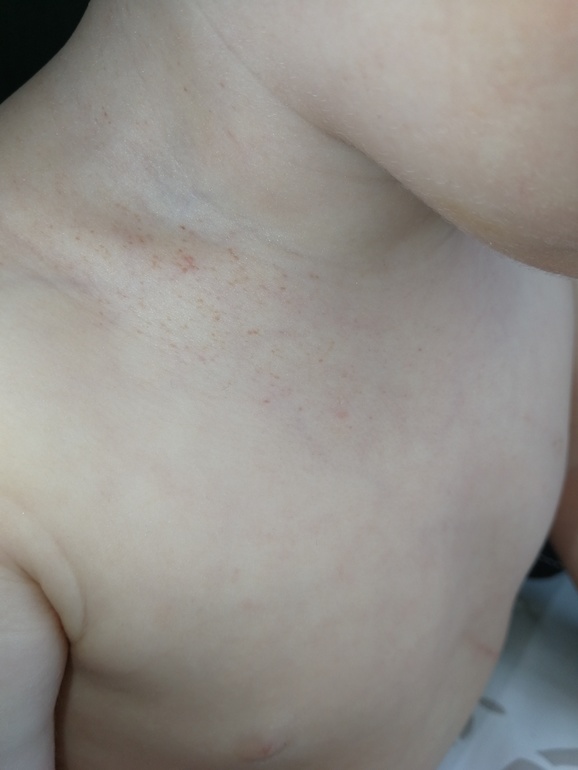 Эта не потница, похоже на петехии, при нажатии не бледнеют?