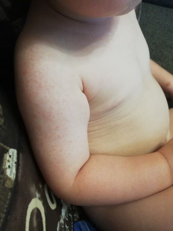 АллергияДевочки, подскажите, что за сыпь. Появилась вчера на руках и на воротниковой зоне. Не чешет. Сыну 1.5, не аллергики. Нового ничего не ел. Это точно аллергия или другое что-то?