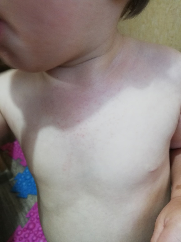 У меня у сына такая же фигня была когда он в термо кофте у бабушки посидел на печке, дорогу в машине ехал домой, как сняла испугалась. Видимо вспотел