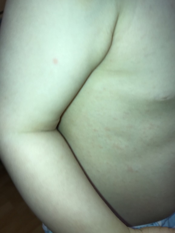 Высыпания на кожеВсем привет!недавно я писала про бессимптомную температуру .Так вот на третий день к вечеру темпа спала сама ,многие предположили розеолу .Моча ок ,кровь педиатр сказала что вирусная .В итоге во второй половине дня появилось вот это (фото под кат.)