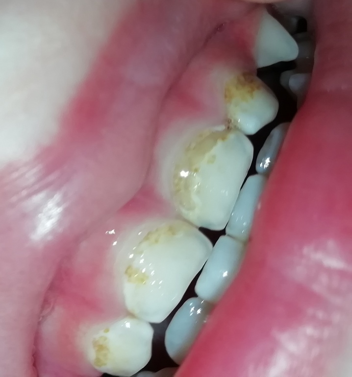 А вообще рекомендую пересмотреть рацион ребенка, исключите все соки, сладкий чай и сладкие напитки, а также конфеты типа леденцов и ирисок, и чистите зубы ежедневно.