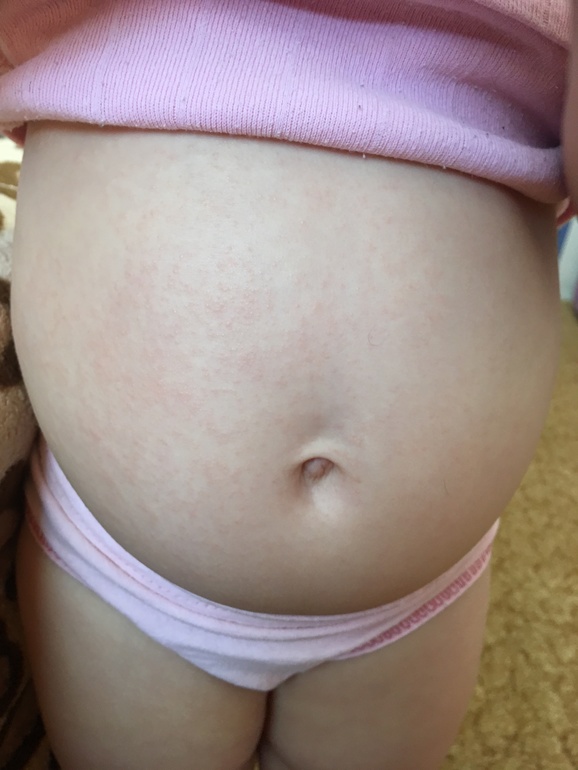 Сыпь не чешет, слегка красновата, мелкими мелкими прыщиками, которые как бы сливаются в одно пятно. Она только на животе и на правой ножке чуть чуть. Может это все таки не «что то с'ела» как говорит наш педиатр, а что то другое? Подскажите, может кто сталкивался?
