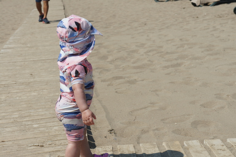 Чувствовала себя немного белой вороной, потому что бОльшая часть детей на пляже была раздета по максимуму даже в самые жаркие часы дня. В то время, когда мы своею малышку прятали в коляску и уводили в тень, многие разрешали своим чадам тусить под палящим солнцем в одних плавках.