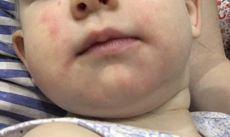 У нас тоже сейчас такое, при чем только на одной щеке. Утром чисто, после обеда уже розовое, вечером красное. И сухое, кремом мазать бесполезно ..У нас была уже «экзема» на бананы поэтому я знаю что аллергия эта накапливается, сейчас думаю или йогурты либо кукурузные палочки, моя их ест каждый день с утра. Буду вычислять.
