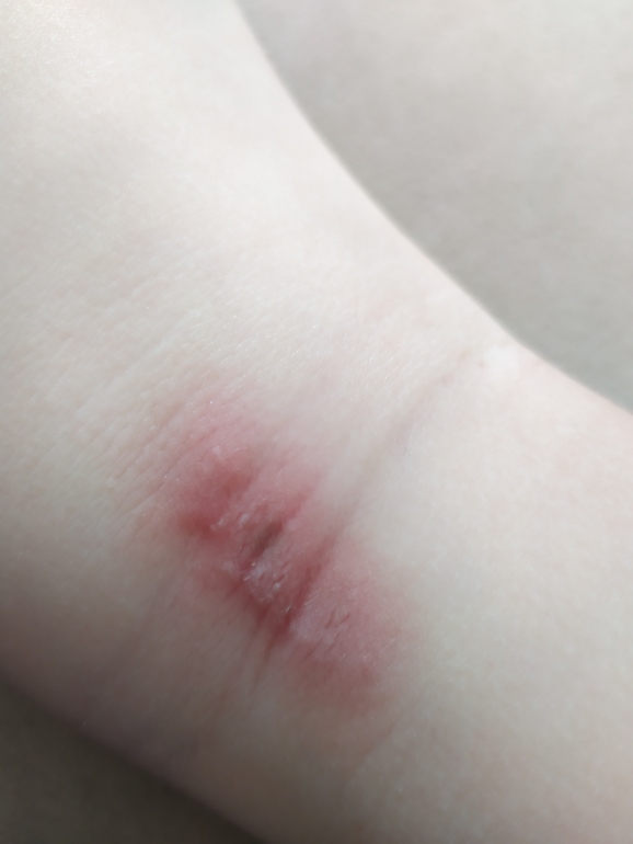 Уже не помню, к сожалению. Сейчас на месте укуса сошли корки после морской воды, подсушилось хорошо. Были у педиатра. Говорит, инфекция попала, жара и место такое укромное под коленом поспособствовали