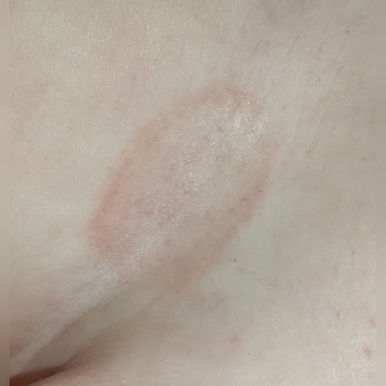 Поэтому обратитесь к дерматологу. Вот это четко выраженное кольцо очень подозрительно, у нас этот кольцевидный лешай таким же колечком выражался.