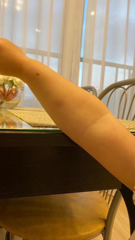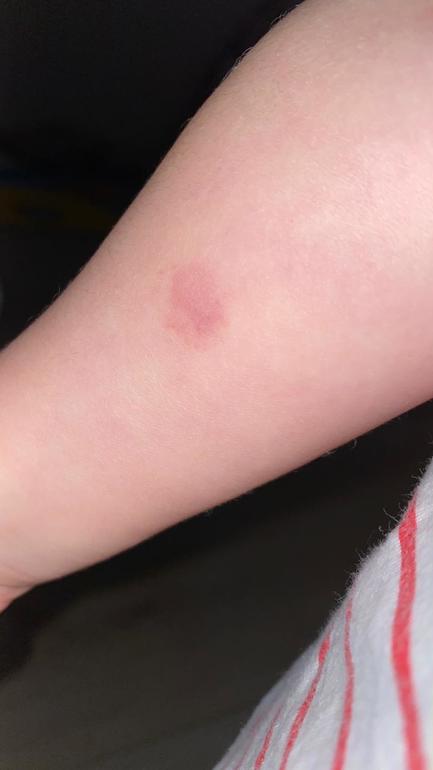 У нас с 19 октября осталось не большое покраснение, точнее похоже на остаток от синяка.
